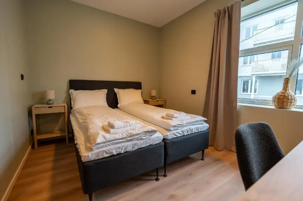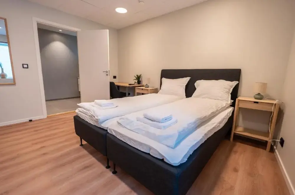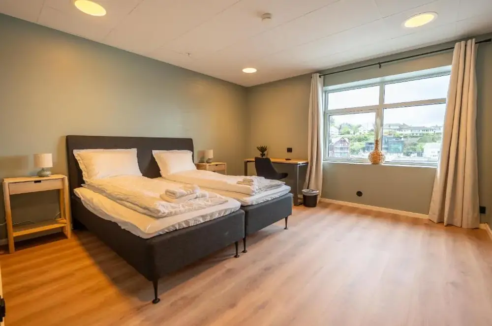 Arken hotell Kopervik er en moderne bolig i Havnegata 9 på Karmøy. Lejlighederne har bredde og komfort, især i badrummet, og inkluderer te-og kaffe-maskiner i alle værelser. Derudover findes faciliteter til handicappede gæster samt familievejlejr. Nære områder inkluderer pizza-baker ved 50 meter, kebab og ice bar på 100 meter, samt cafe mm Kopervik på 30 meter. Værelser uden rygepladser og roomservice er også tilgængelige.